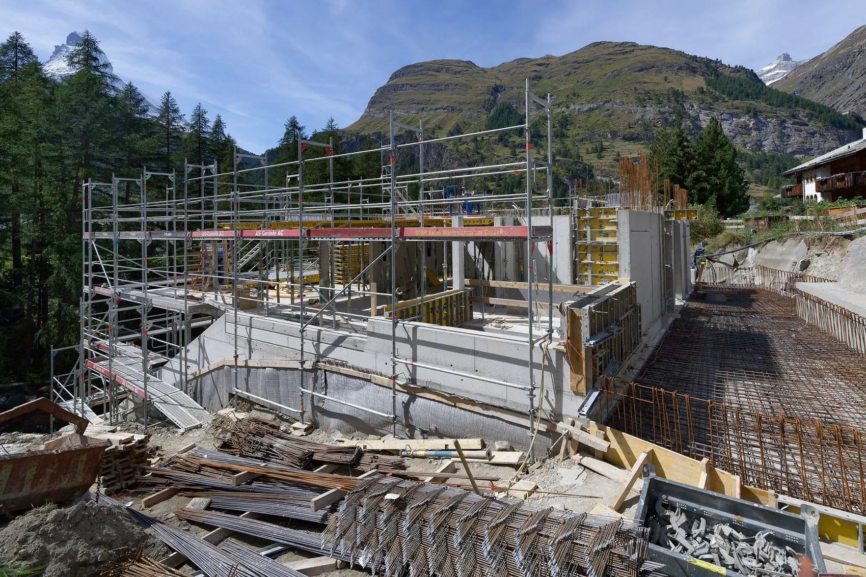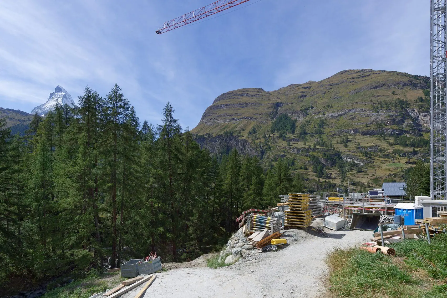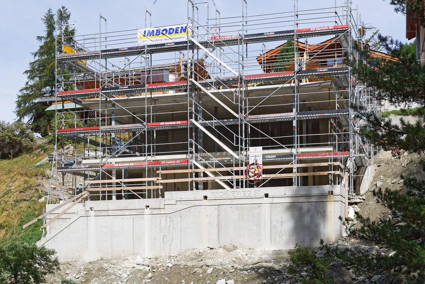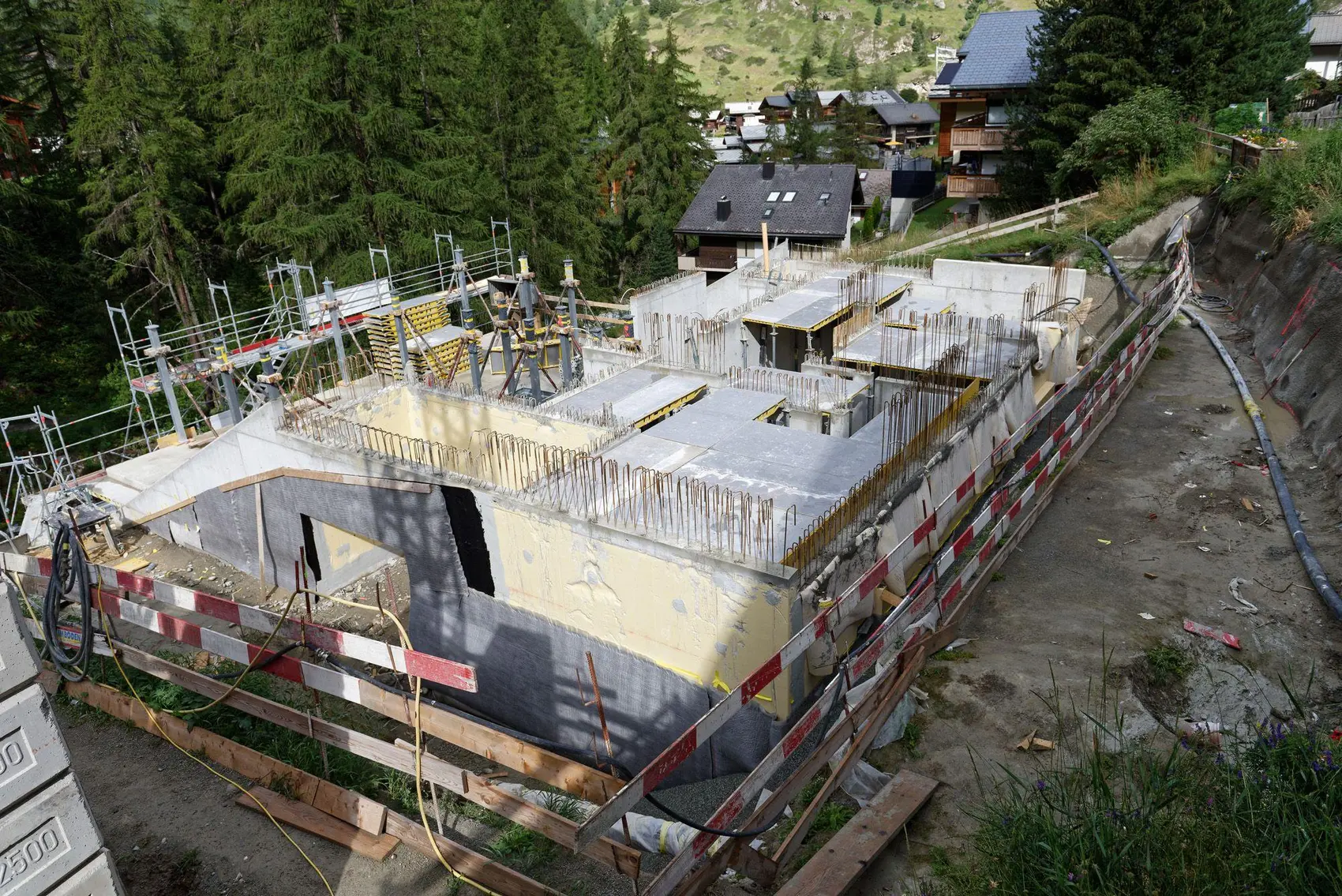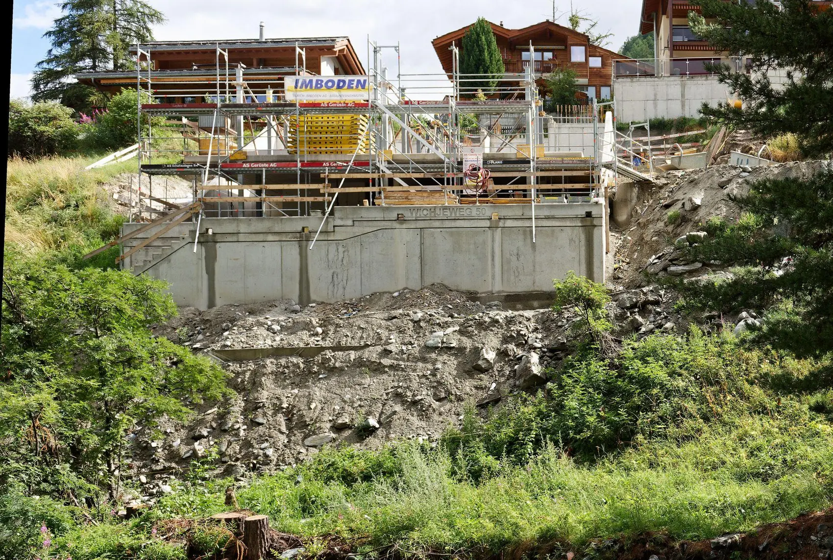 Der Bau des Mehrfamilienhauses auf der Parzelle im Dorfteil Wichje liegt nahe am Findelbach. Das Haus ist zum Matterhorn ausgerichtet.