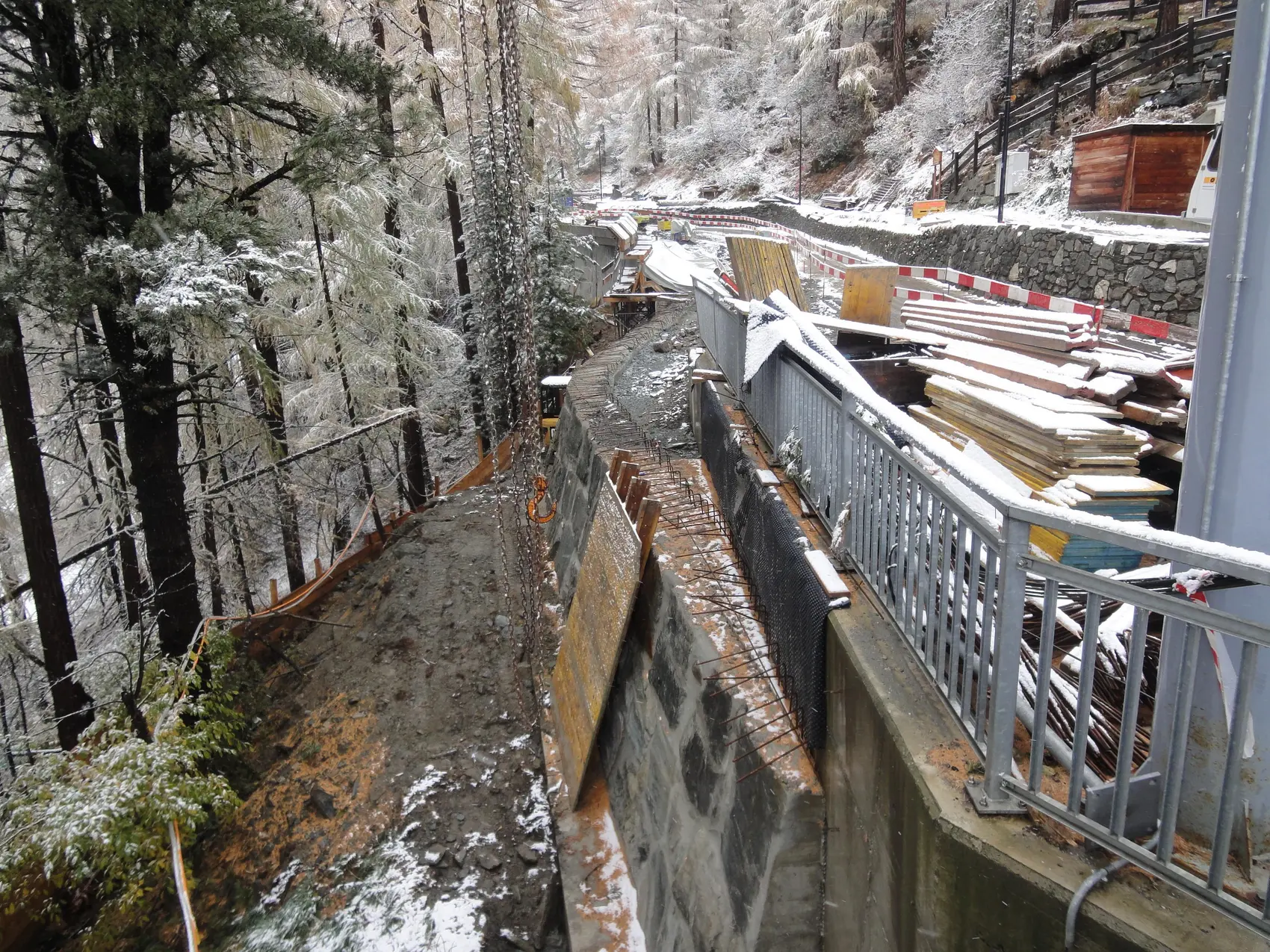 Objektbeschrieb | Beim Projekt Pistenrückführung Howette, 1.Etappe, wird der bestehende Riedweg talseitig so verbreitert, dass eine Piste von einer minimalen Breite von 6.0m entsteht. Die Verbreiterung beginnt beim Personenlift, Eischtje, und endet beim bestehenden Lehnenviadukt Gibje, Länge = ca. 210m. |